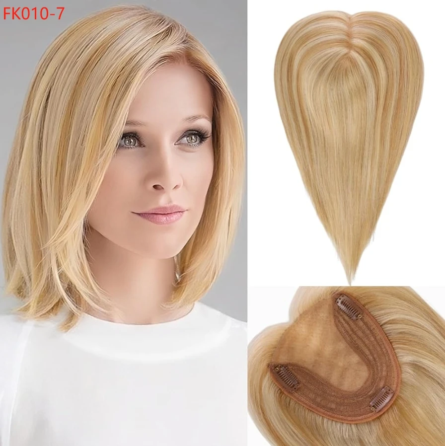 Complément capillaire blond ombré en cheveux humains Remy, racines foncées, base soie clips 35 cm