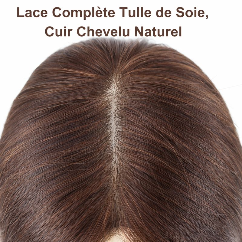 Découvrez la perruque en dentelle intégrale avec base en soie et bordure en PU, cheveux humains, pour un look naturel.
