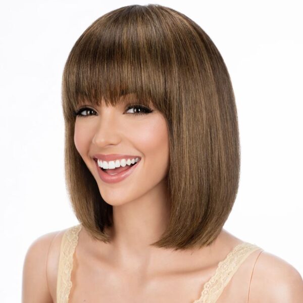 La texture lisse met en valeur une finition propre et régulière, idéale pour obtenir une coiffure structurée. Un lissage homogène apporte un aspect soigné et facilite l’entretien au quotidien, notamment pour garder une frange bien définie. Une fois la perruque correctement positionnée, quelques gestes simples suffisent pour harmoniser les mèches et ajuster la frange afin d’obtenir un rendu naturel et cohérent avec votre visage.