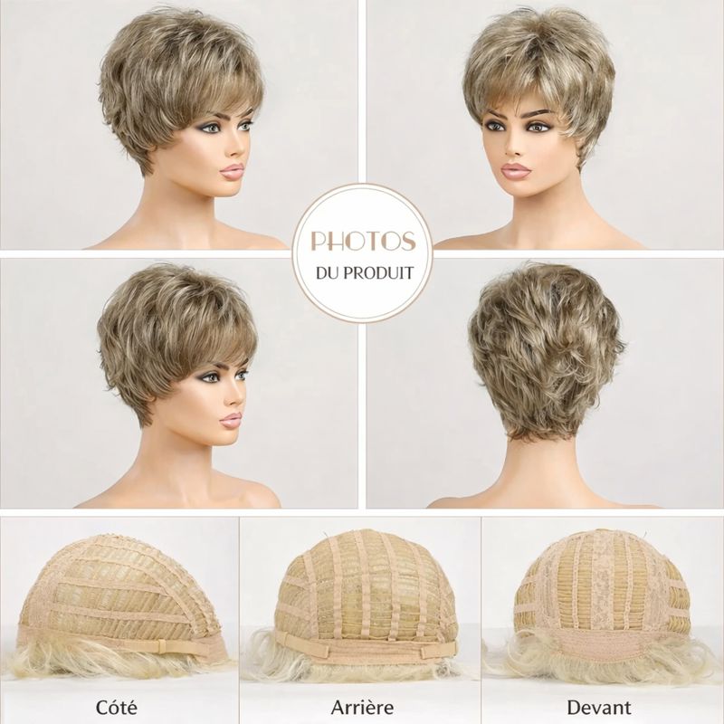 Perruque courte Mireille : coupe lisse de 25 cm, facile à porter