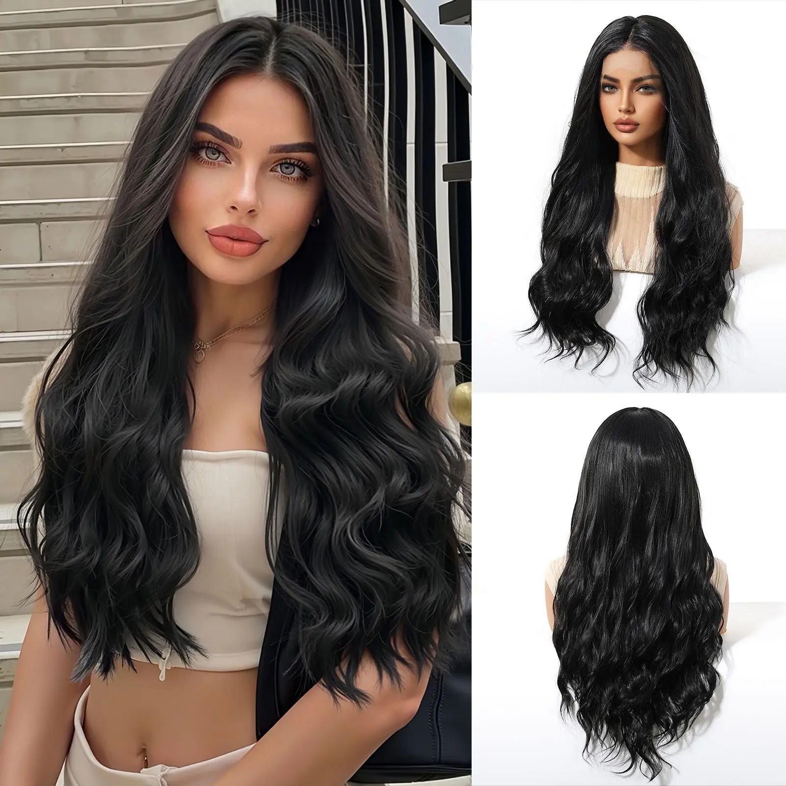 Perruque  synthétique ondulée longue avec lace front, pour un look tendance et naturel.