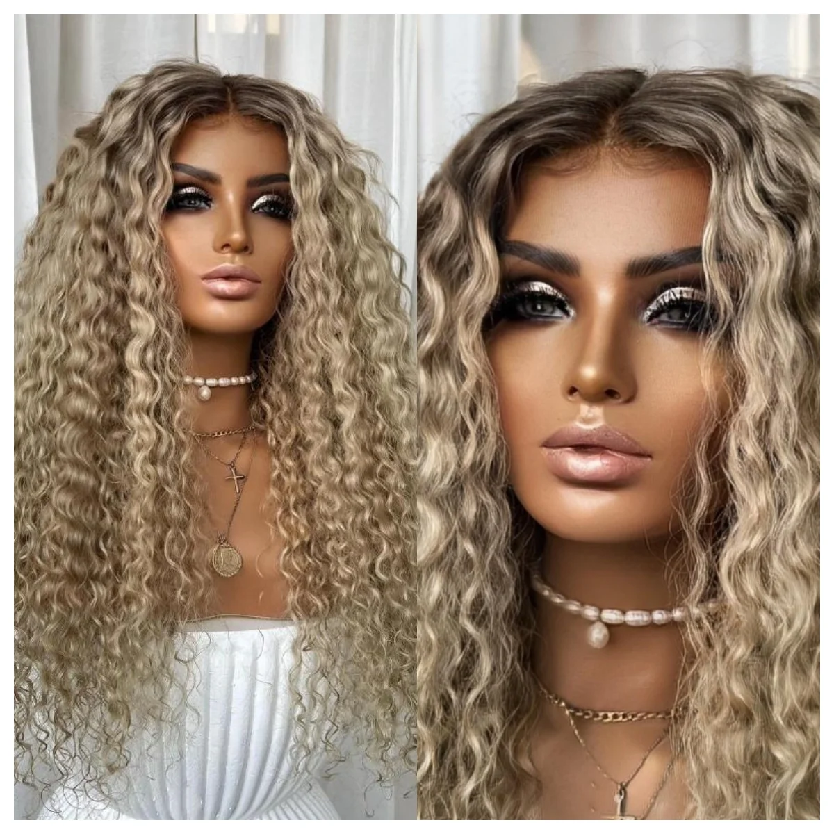 Le séchage à l’air libre sur un support propre aide à conserver le ressort des boucles et la forme de la perruque. Pour le démêlage, utilisez un peigne à dents larges ou un démêlage au doigt, en commençant par les pointes puis en remontant progressivement. La fibre haute température permet une mise en forme compatible avec des outils chauffants, avec une utilisation mesurée et des gestes progressifs pour préserver l’aspect des longueurs. Manipulez la dentelle suisse avec soin au niveau de la ligne frontale et des baby hair afin de garder une finition nette. Entre deux utilisations, stockez la perruque à l’abri de la poussière et de l’humidité, en évitant les frottements prolongés, pour conserver un rendu soigné et un contour propre.